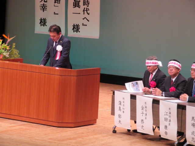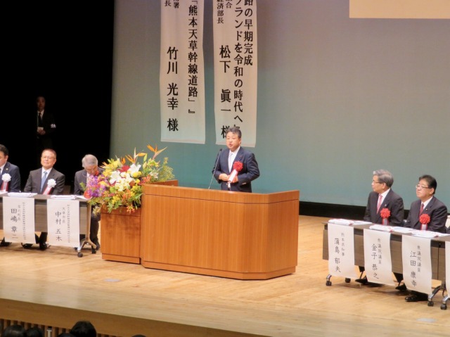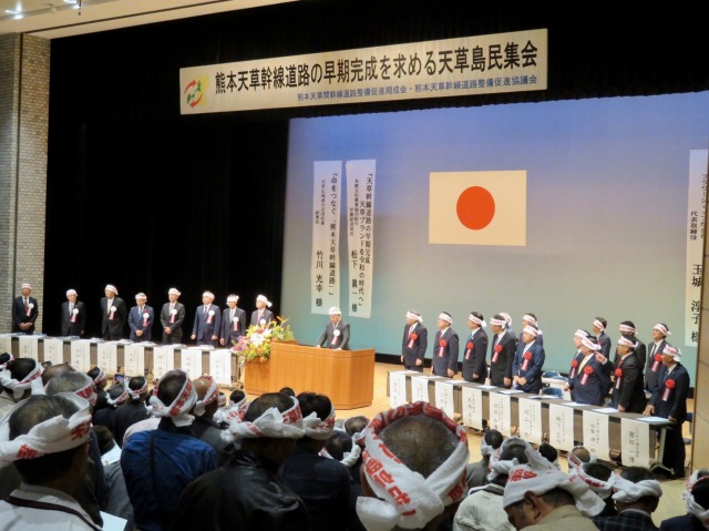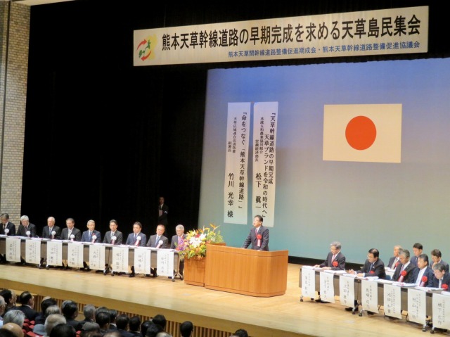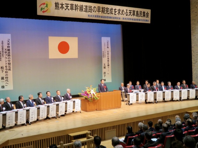 熊本天草幹線道路の早期完成を求める天草島民集会(天草市民センターホール)