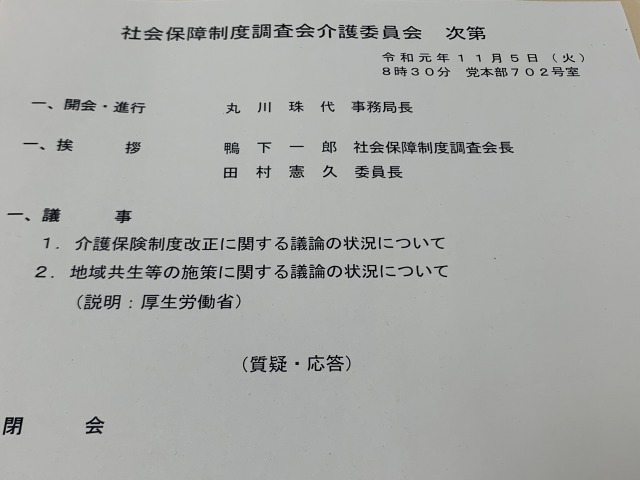 自民党 社会保障制度調査会 介護委員会
