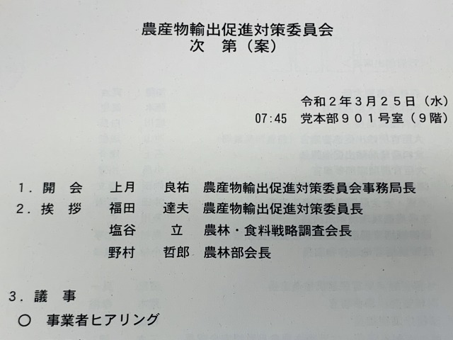 自民党 農産物輸出促進対策委員会