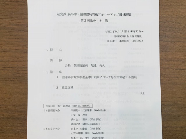 超党派 脳卒中・循環器病対策フォローアップ議員連盟 総会