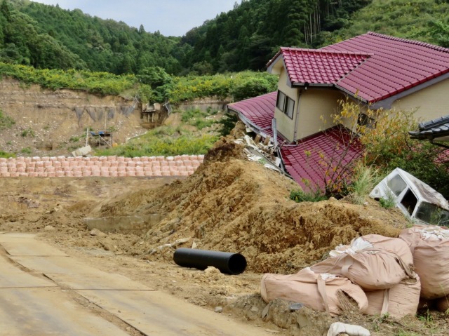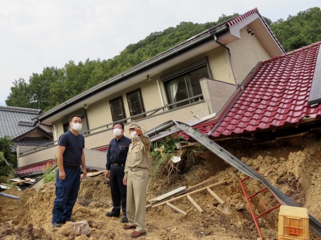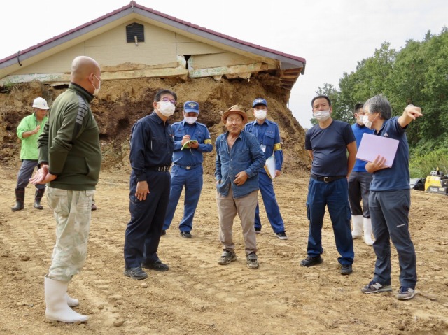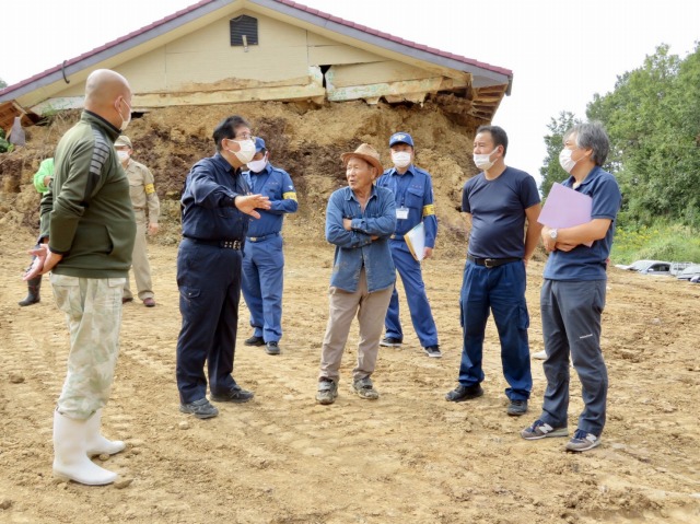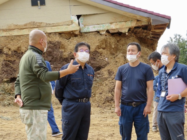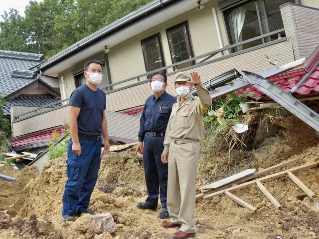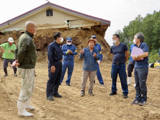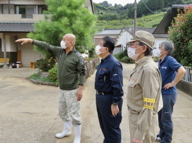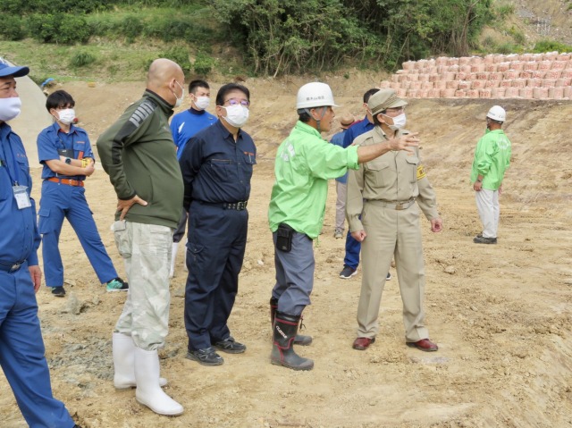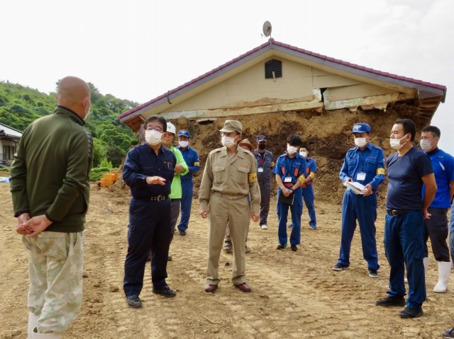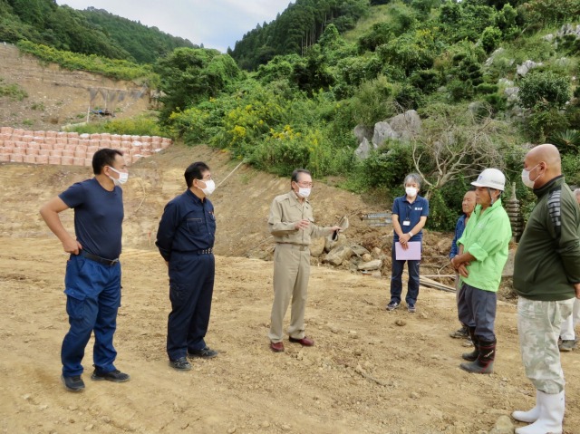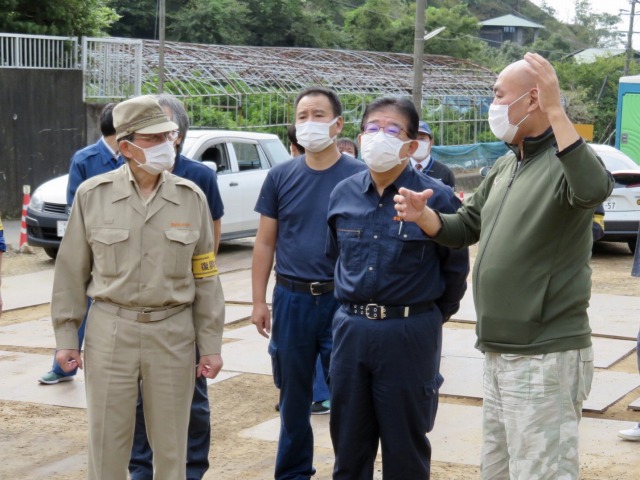 令和2年7月豪雨災害「農道災害現場」視察(芦北町・広域農道 鶴木山工区) ※芦北町・竹崎町長、荒川県議 同行
