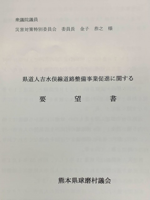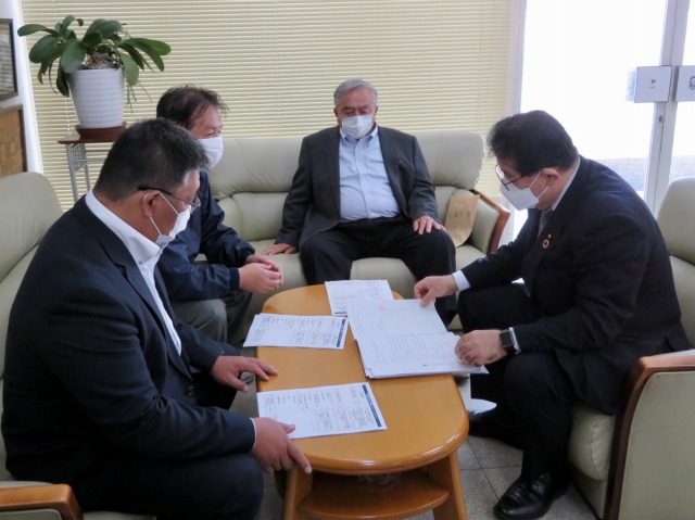 球磨村議会 豪雨災害 復旧・復興対策特別委員会 舟戸委員長、高澤副委員長、多武村議会議長 要望来所(人吉事務所)