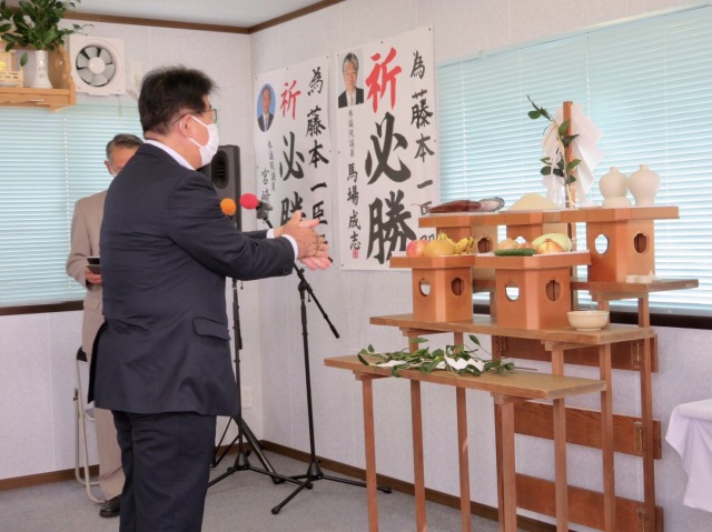 〔 氷川町長 〕藤本かずおみ後援会事務所開き( 祈願祭・事務所開き )