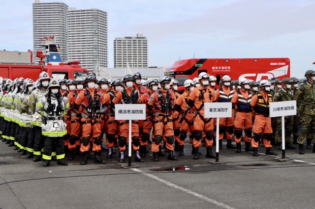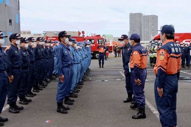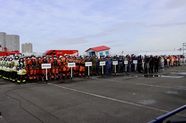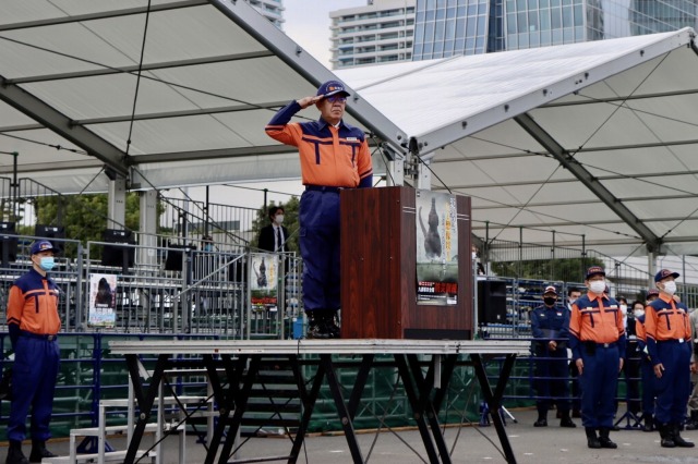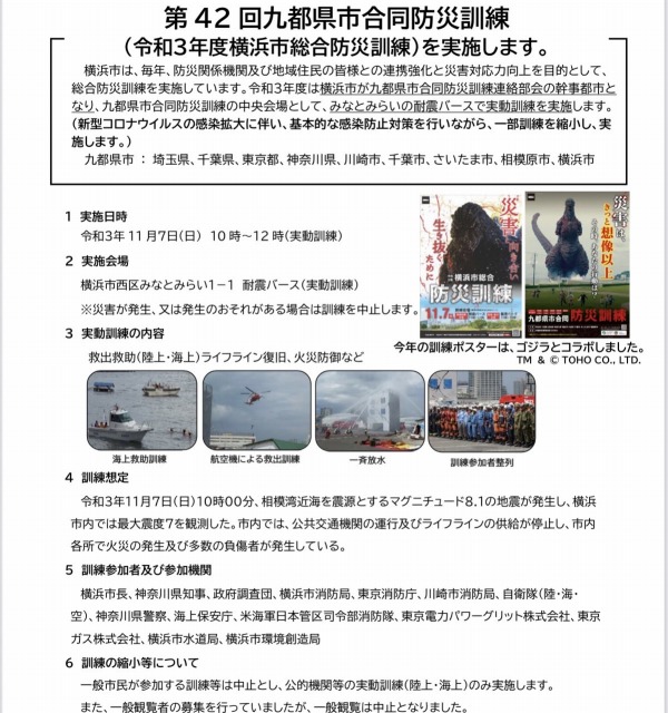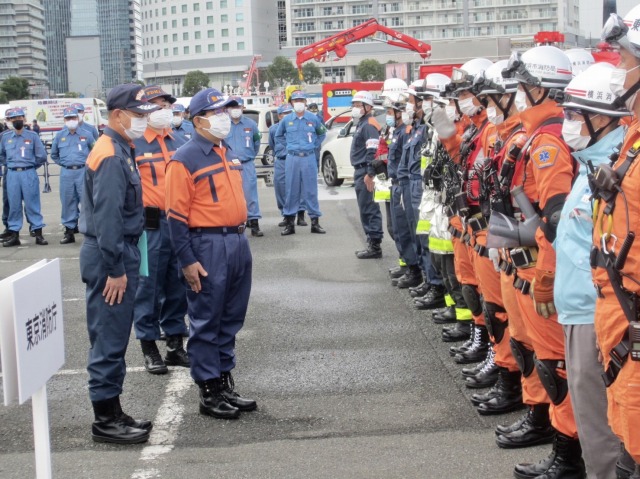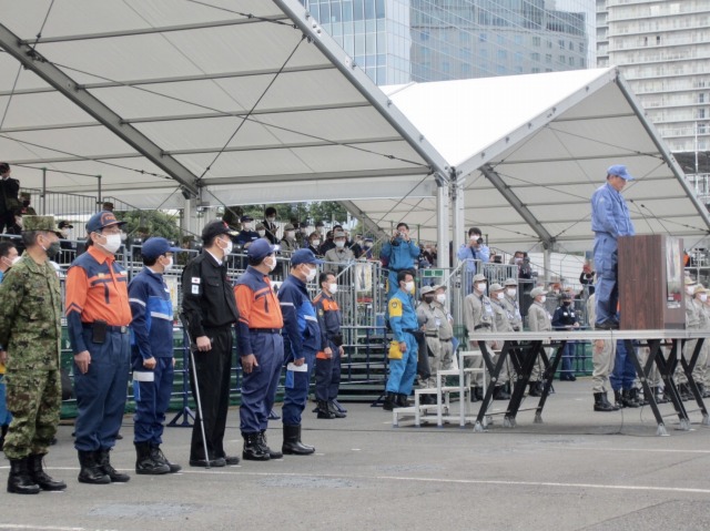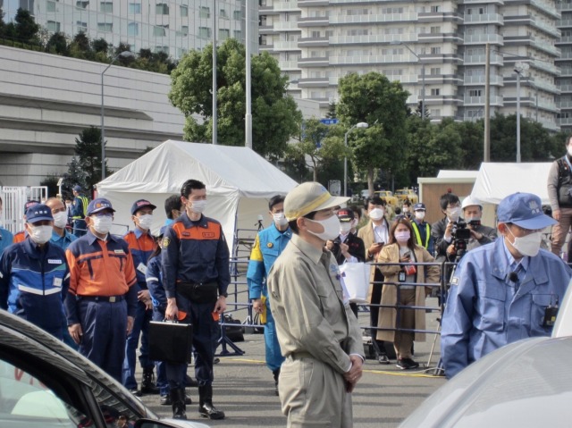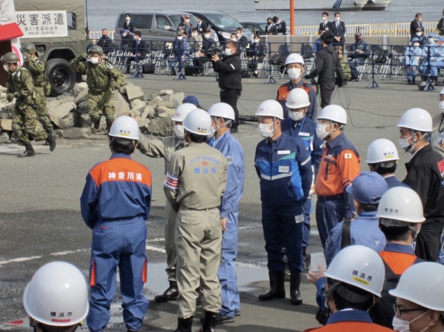 「第42回 九都県市 合同防災訓練(横浜市西区 みなとみらい 耐震バース)」を視察