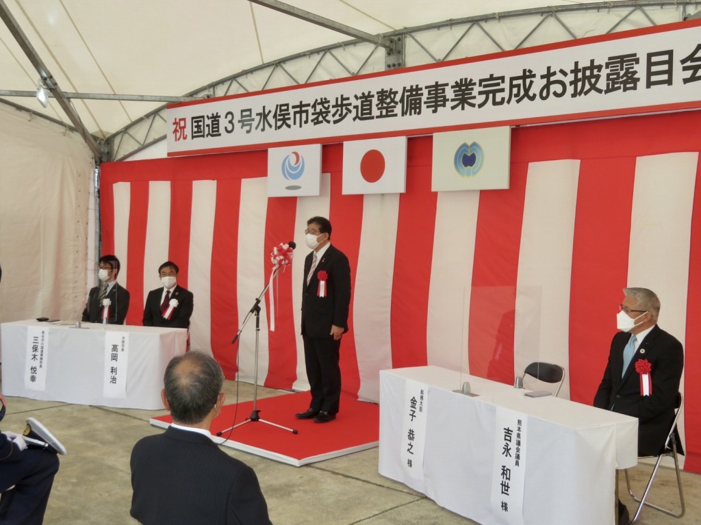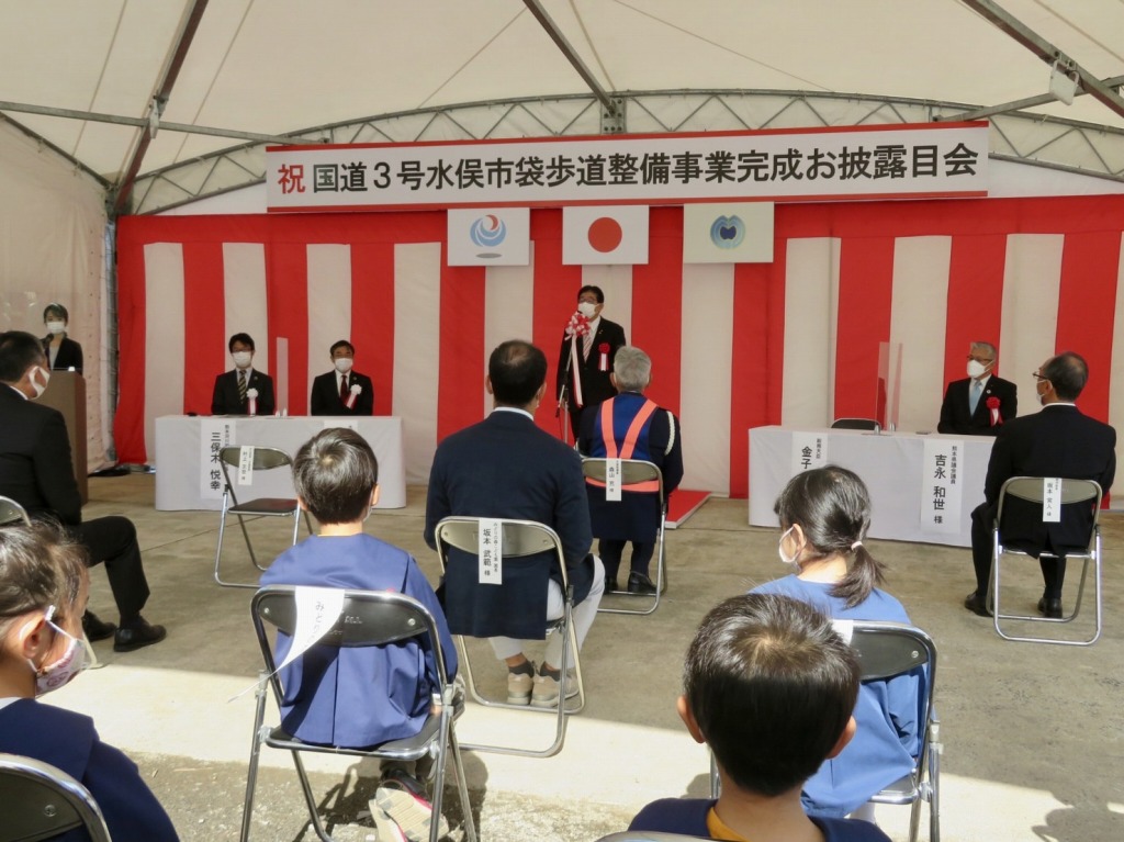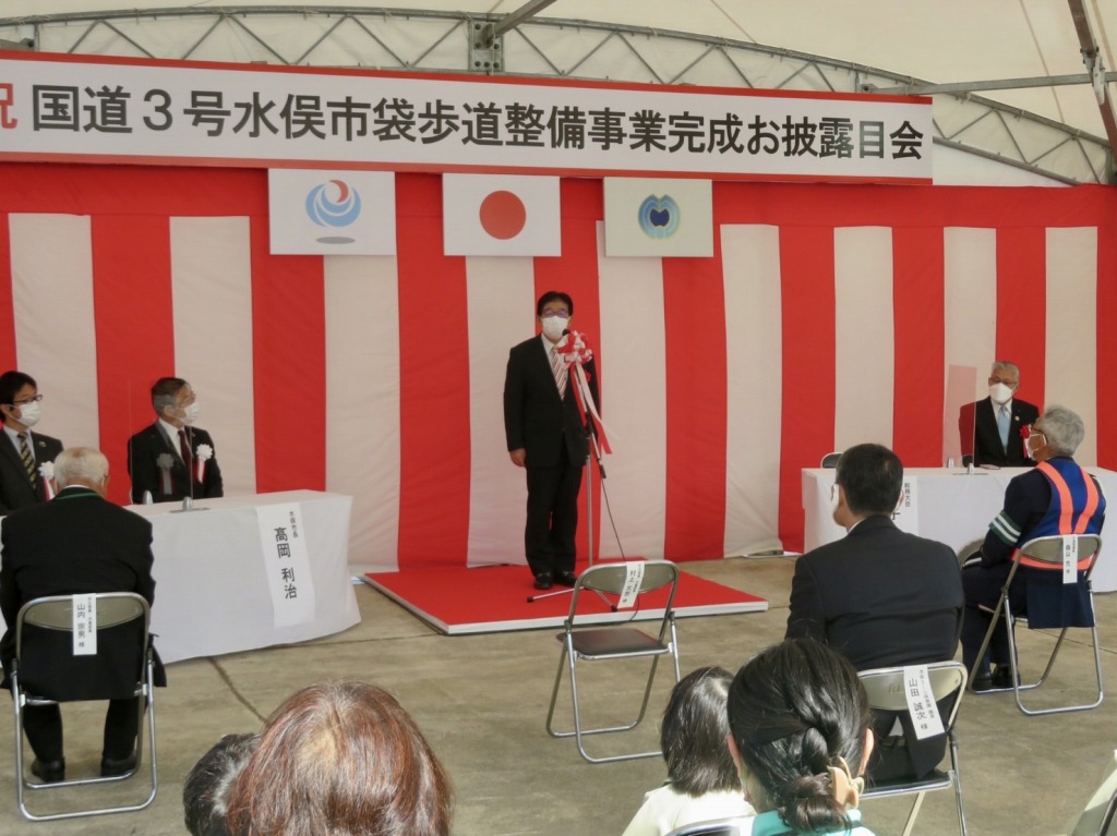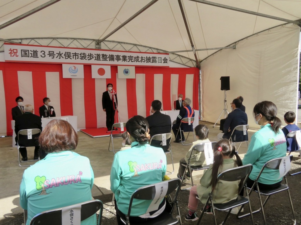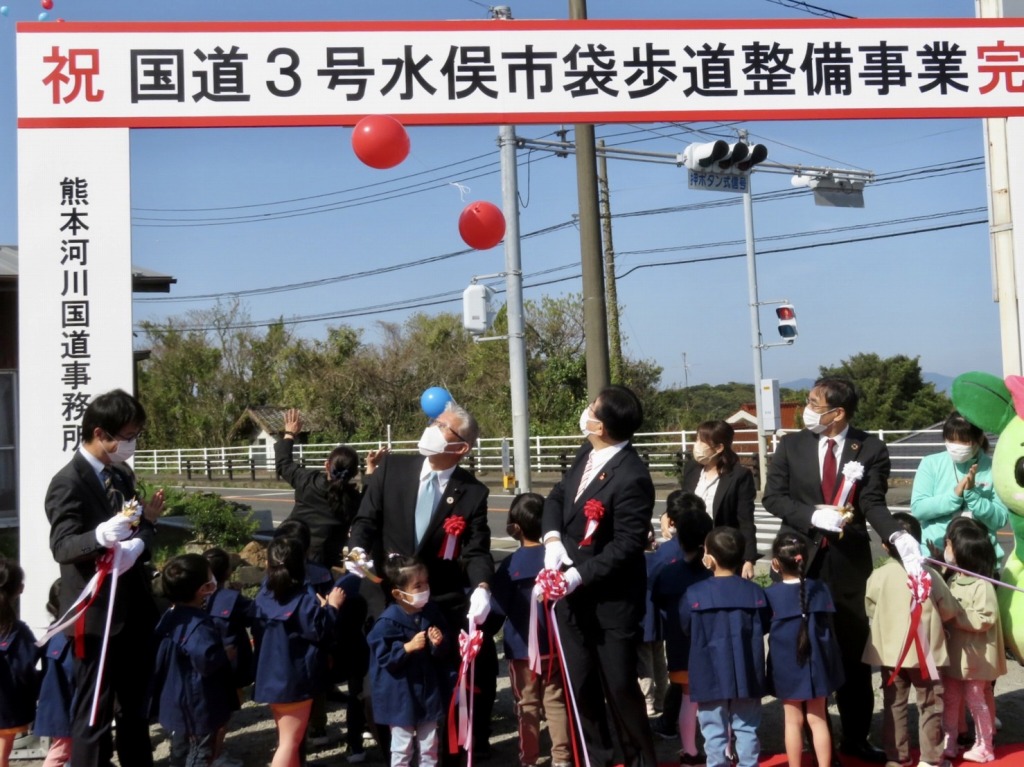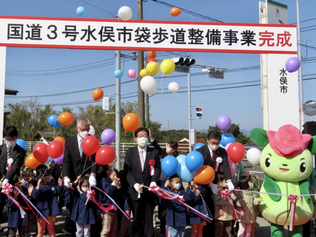 国道3号水俣市袋歩道整備事業の完成お披露目式(水俣市袋地先)