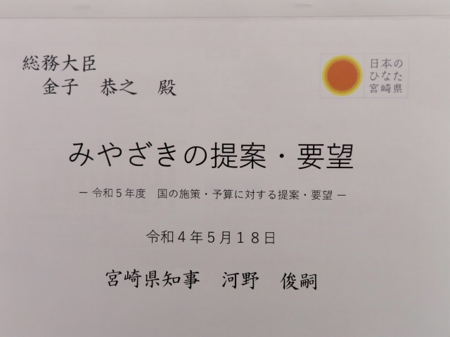 宮崎県・河野 知事、中野 県議会議長 要望来室(総務大臣室)