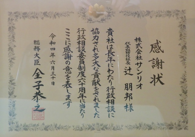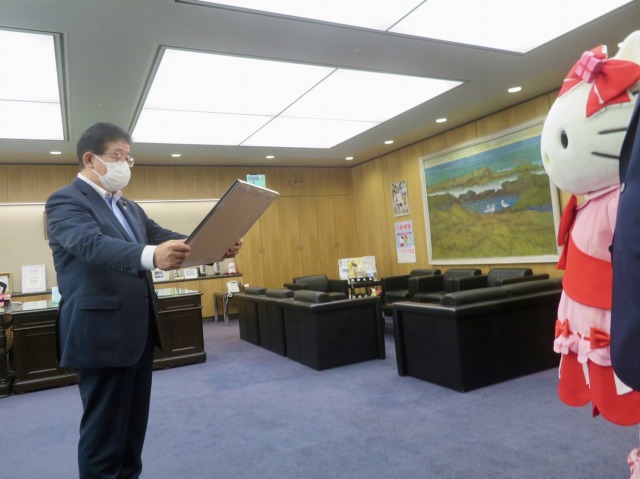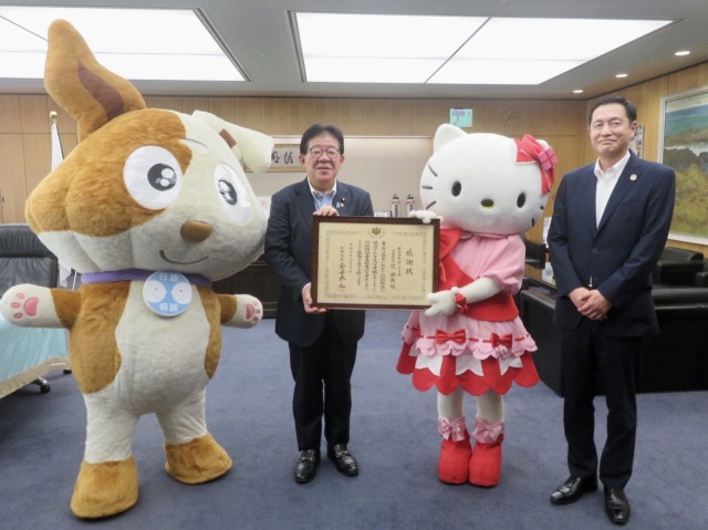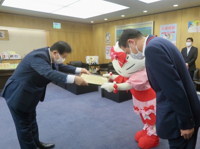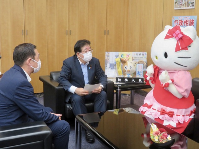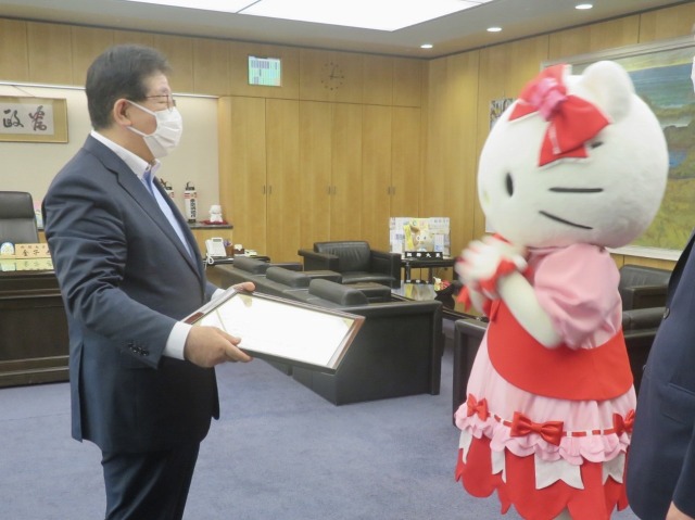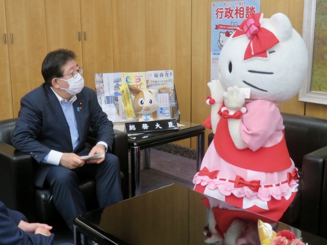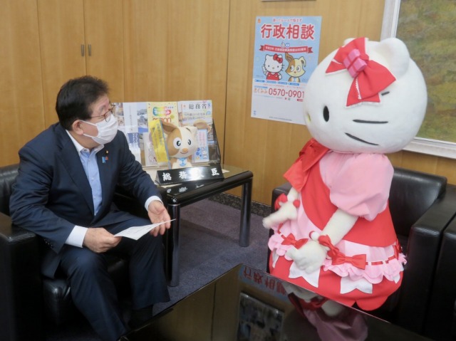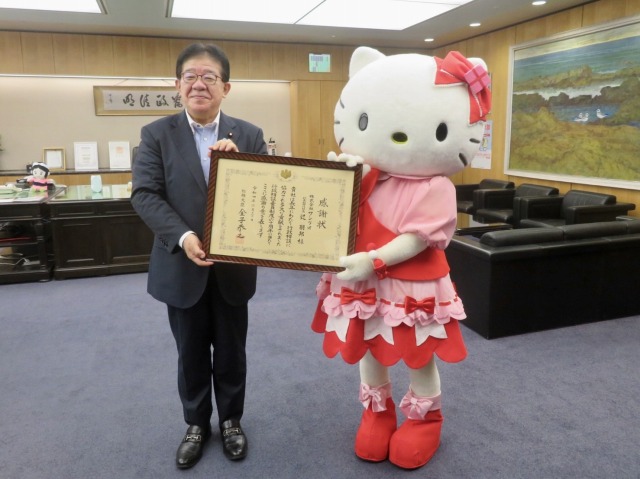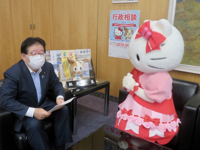 (株)サンリオ〔キティちゃん〕への総務大臣表彰贈呈式 及び 懇談(総務大臣室)