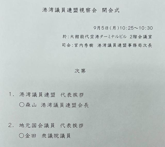 〔 自民党 港湾議員連盟 現地視察(秋田県)〕大館能代空港 到着、開会式(大館能代空港内 会議室)※会長代行
