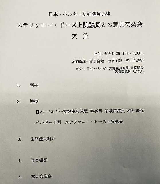 日本・ベルギー友好議員連盟「 ステファニー・ドーズ上院議長との意見交換会 」