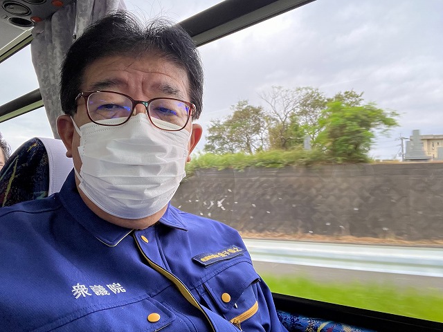 衆議院災害対策特別委員会「災害対策に関する実情調査〔※令和4年 台風14号に係る現場視察(宮崎県)」①宮崎県より移動バス車中にて被災状況 説明(宮崎空港→延岡市)※与党筆頭理事