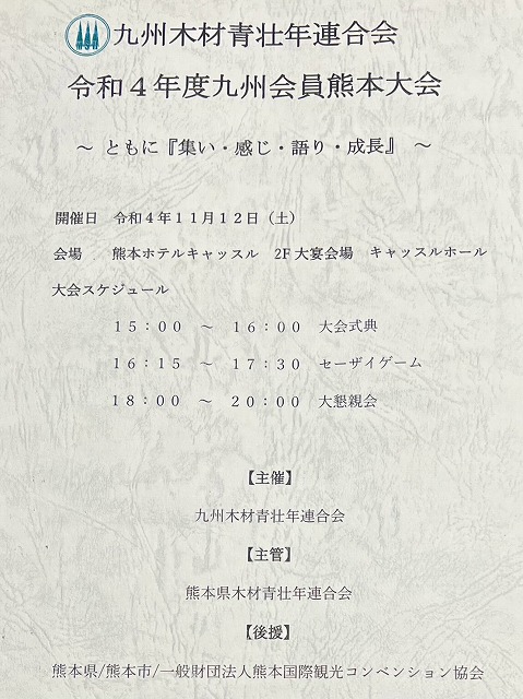 九州木材青壮年団体連合会「 令和4年度 九州会員熊本大会 」( 熊本市内 )