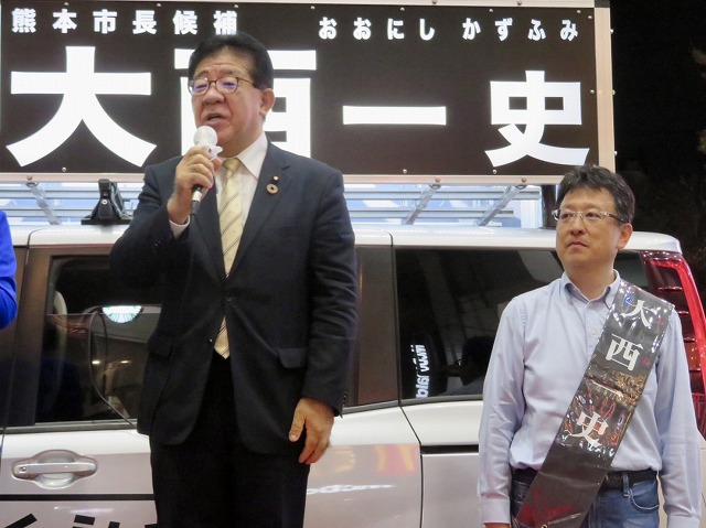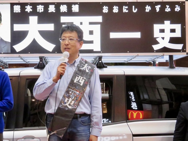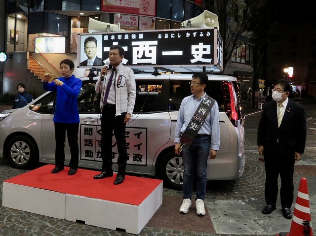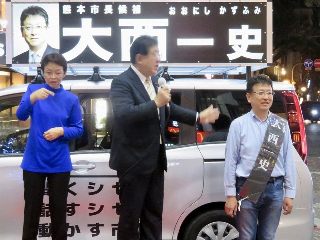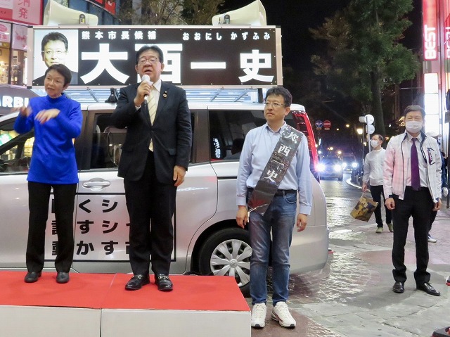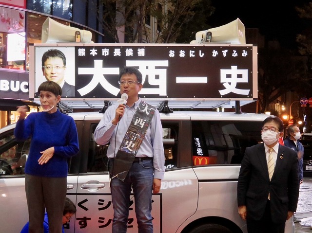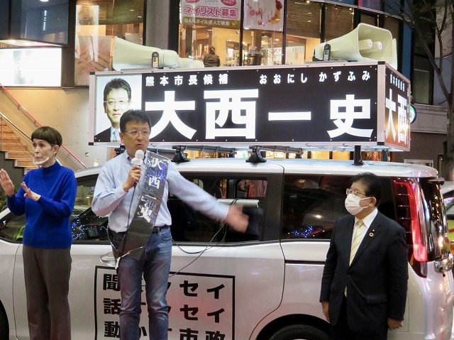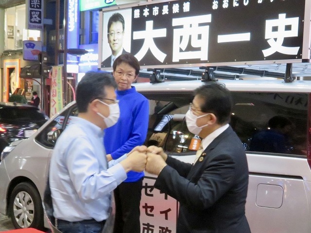 〔 熊本市長 選挙( 遊説 最終日 )〕大西一史 候補 マイク納め式