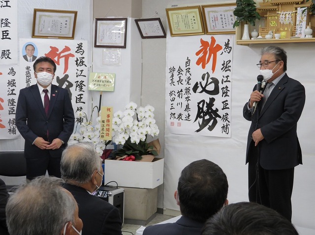 〔 苓北町長 候補予定者 〕山崎秀典「 後援会事務所開き 」( 苓北町志岐 )