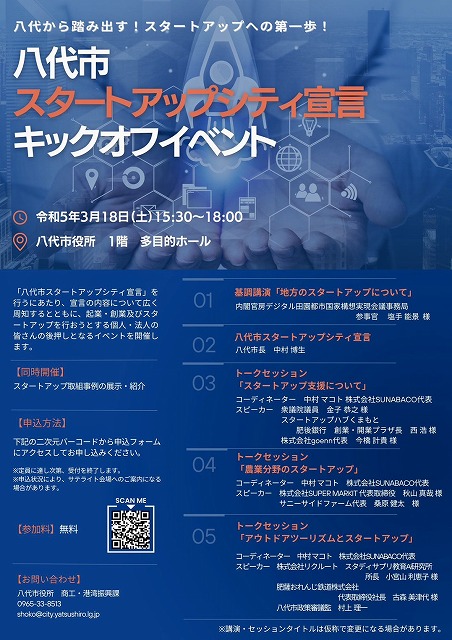 八代市「 スタートアップシティ宣言 」キックオフイベント( 八代市役所 多目的ホール ) ※トークセッション「 スタートアップ支援について 」参加
