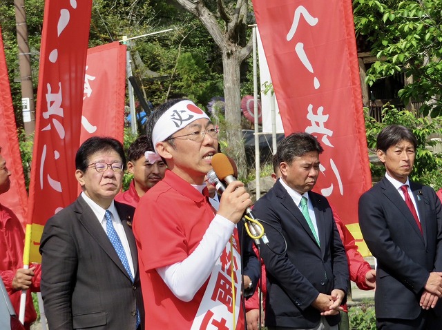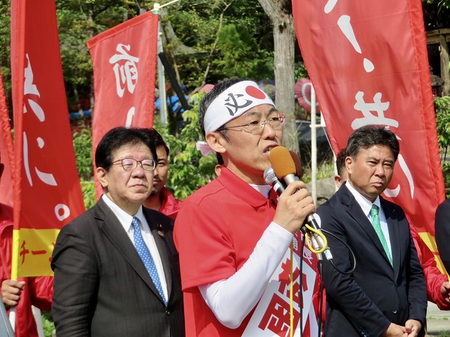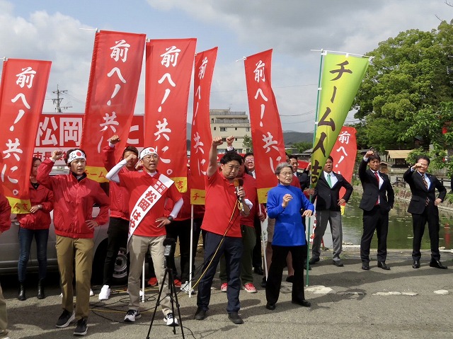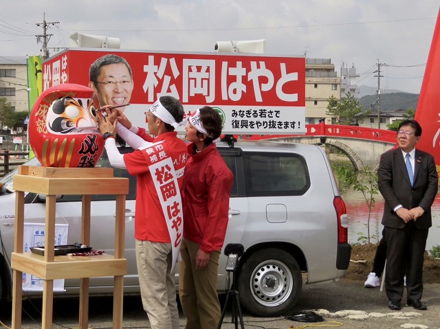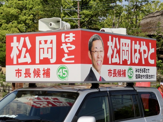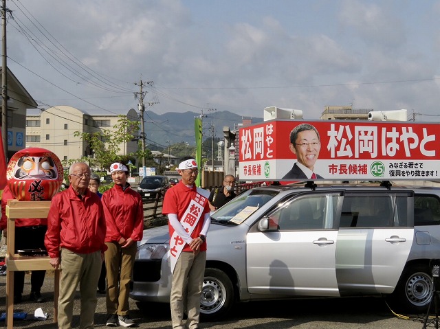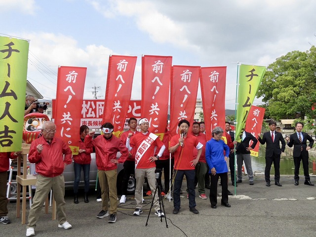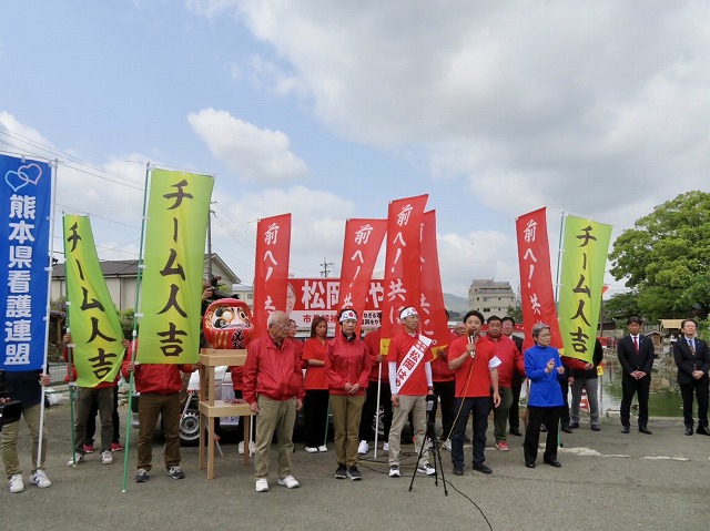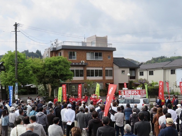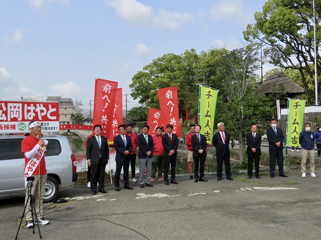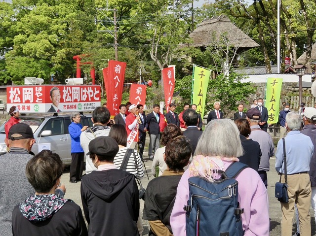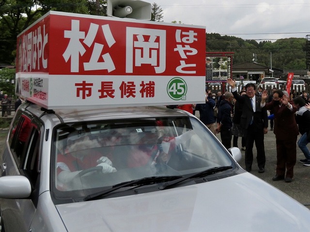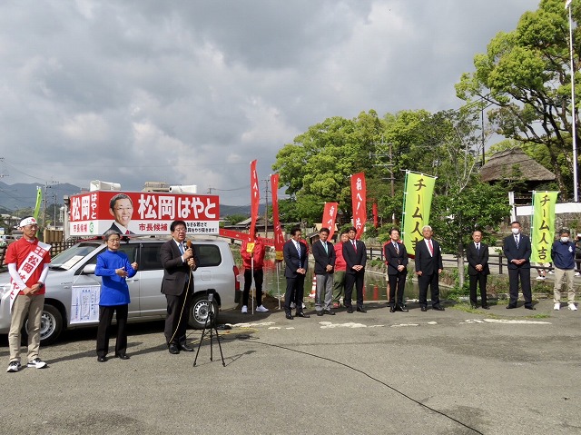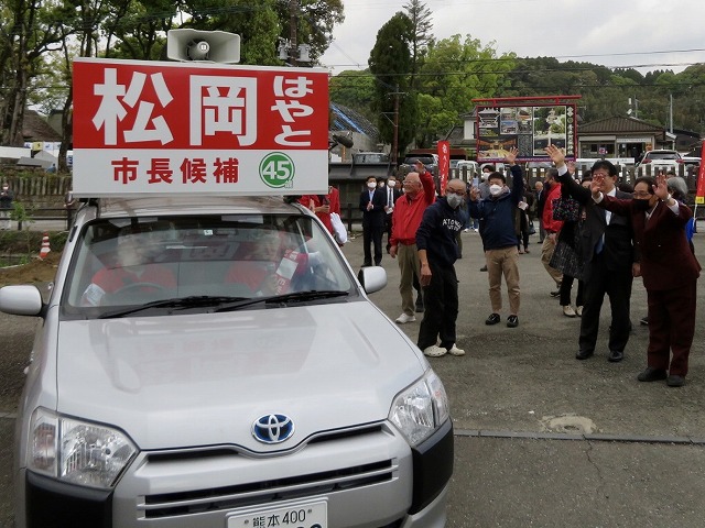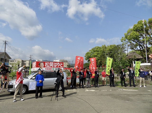 〔 人吉市長 選挙 告示日 〕松岡はやと「 出陣式 」( 青井阿蘇神社 蓮池横 駐車場 )