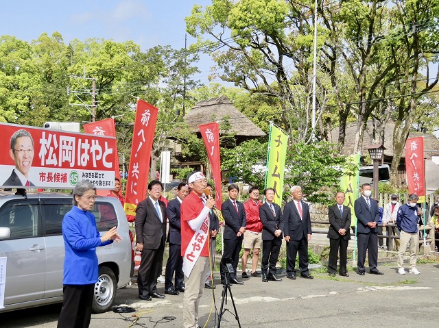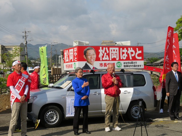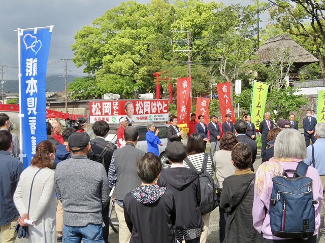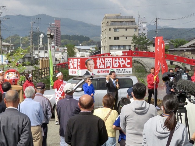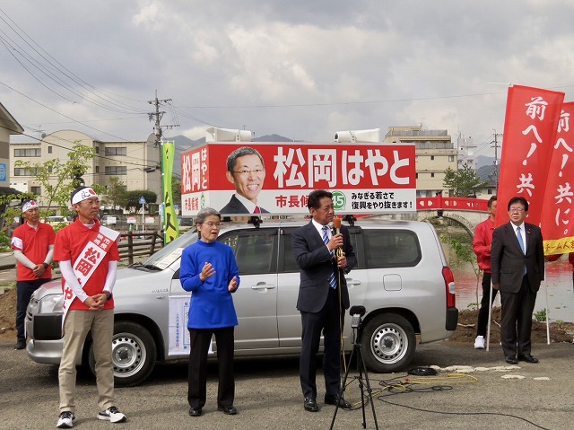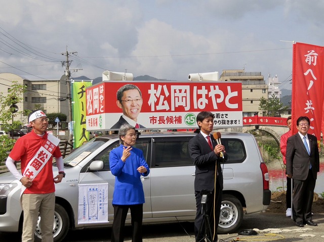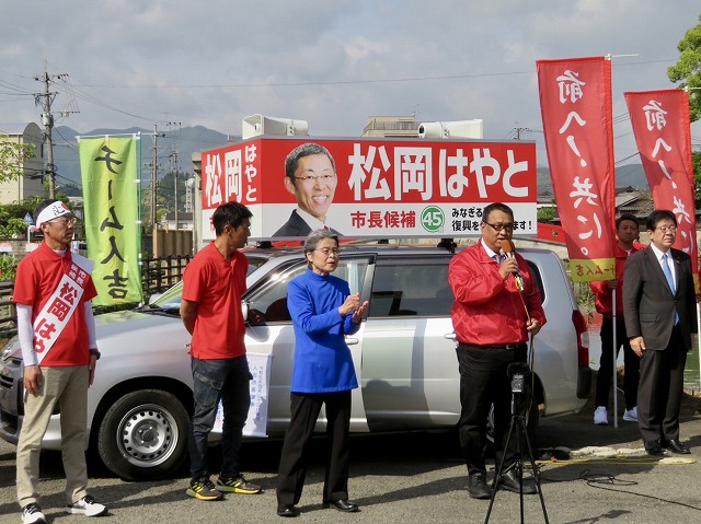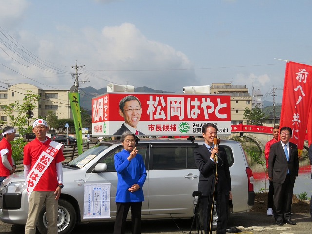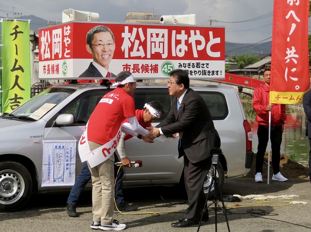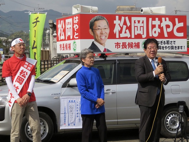 〔 人吉市長 選挙 告示日 〕松岡はやと「 街頭演説 」( あゆの里 駐車場 ) ※応援弁士