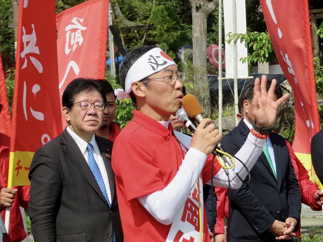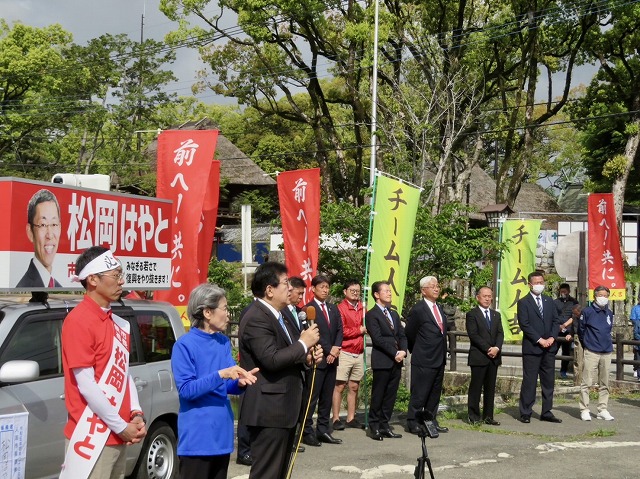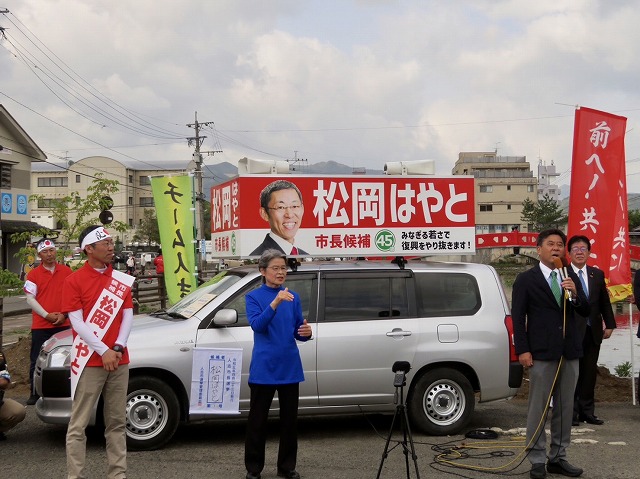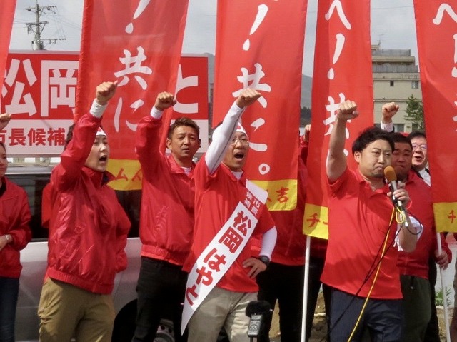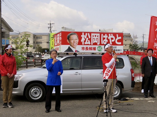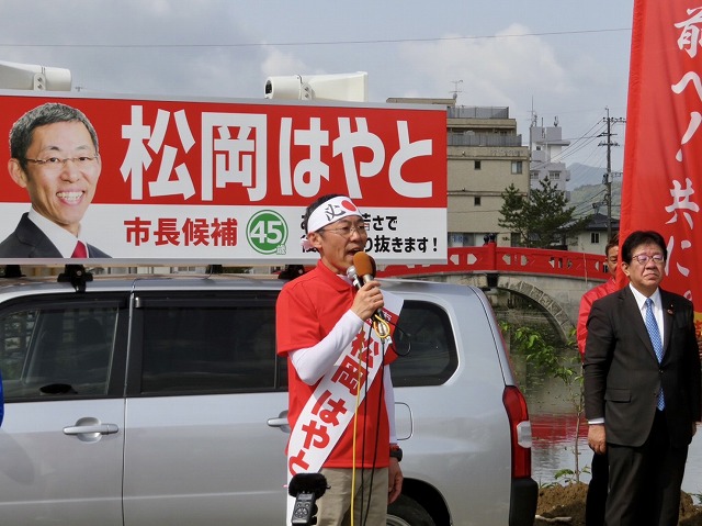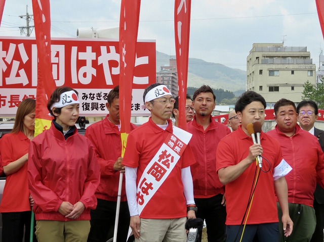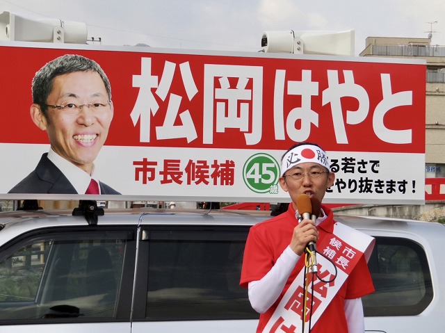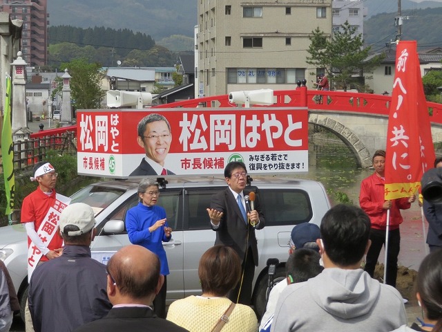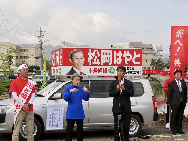 〔 人吉市長 選挙 告示日 〕松岡はやと「 街頭演説 」( あゆの里 駐車場 ) ※応援弁士