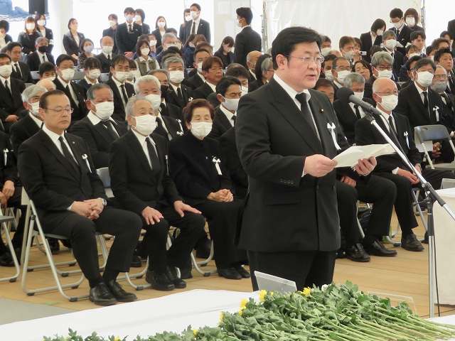令和5年度 水俣病犠牲者慰霊式( 水俣市・エコパーク水俣 親水緑地「 水俣病慰霊の碑 」前 )
