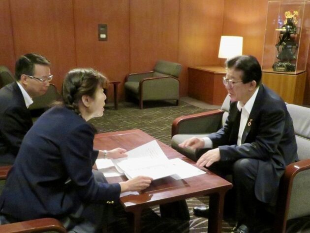 肥薩おれんじ鉄道・古森社長より説明( 熊本市内 ) ※肥薩おれんじ鉄道対策議員連盟 会長