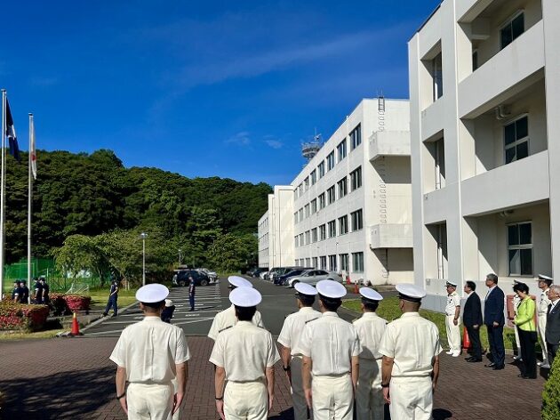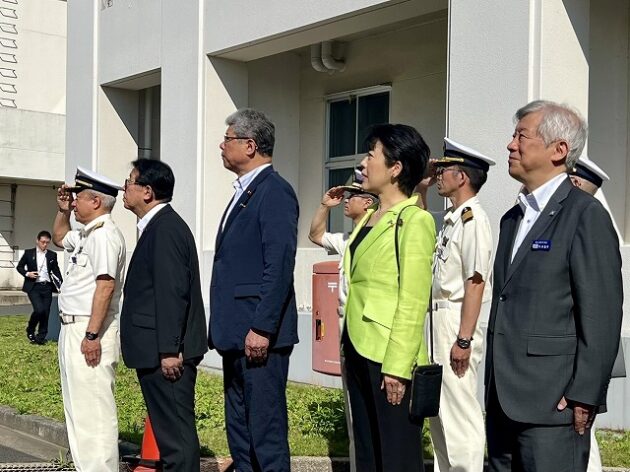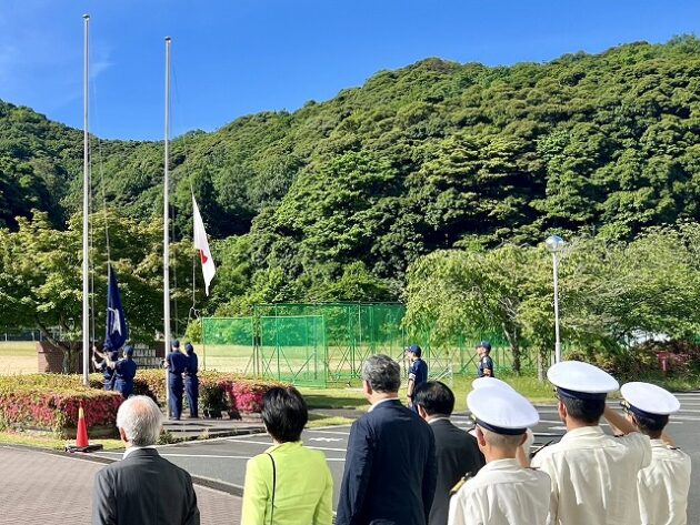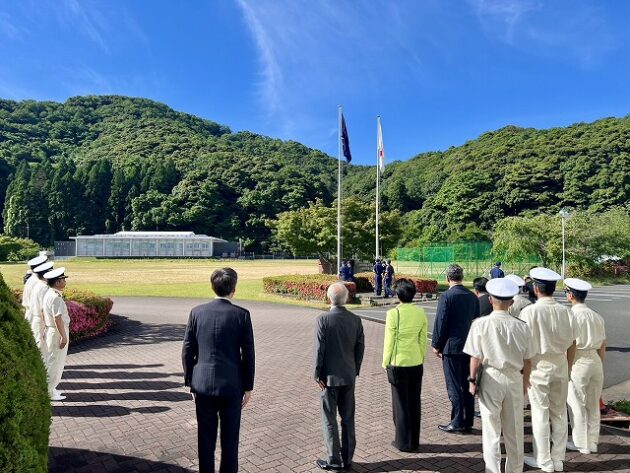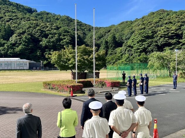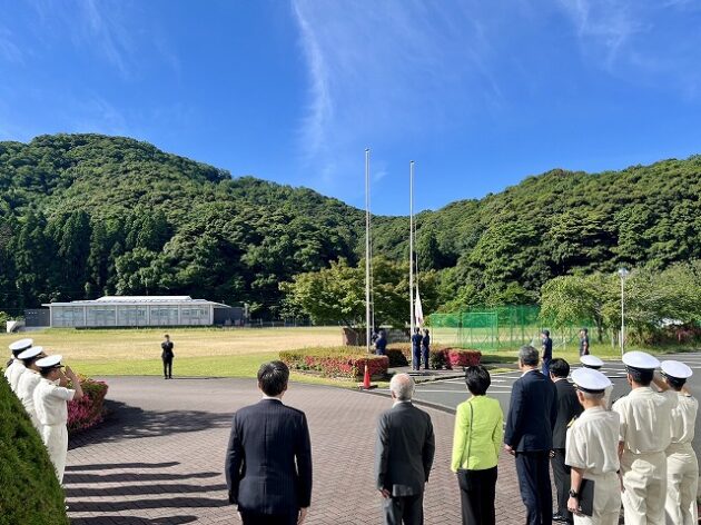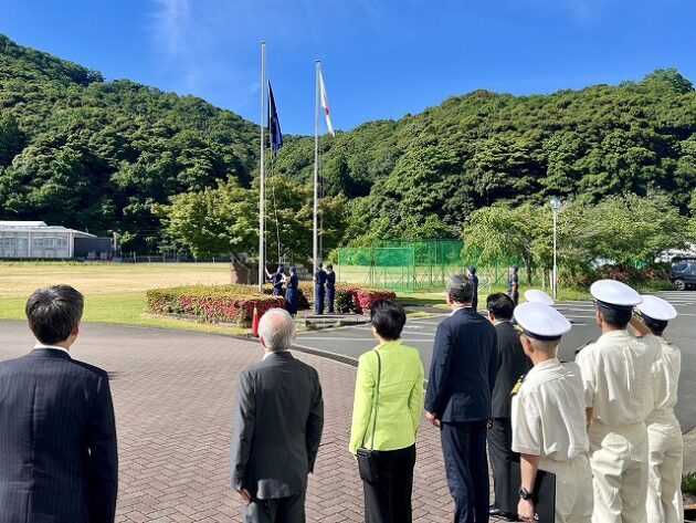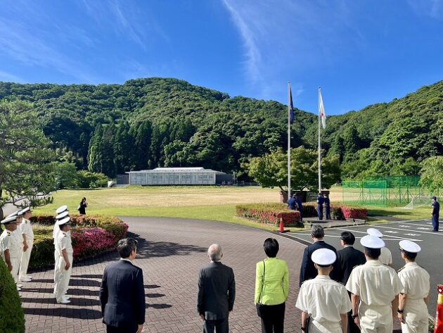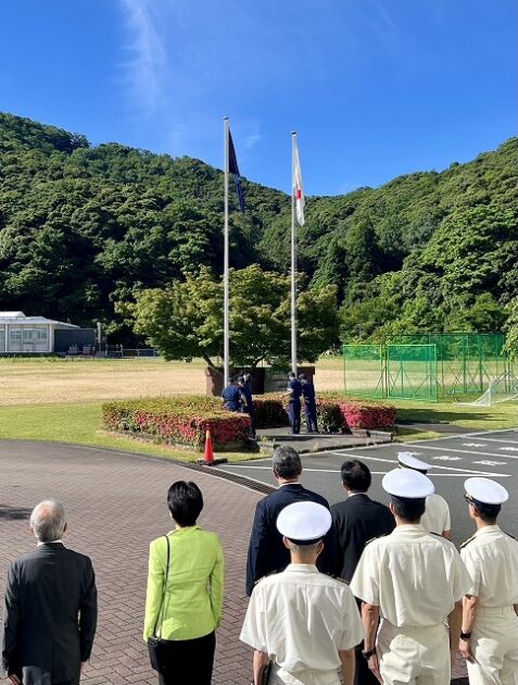 「 海上保安学校 」視察・激励 ①国旗・庁旗 掲揚( 京都府 舞鶴市 ) ※自民党「 海上保安議員連盟 」金子恭之 会長、高木毅 副会長、有村治子 議員
