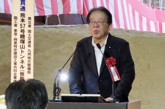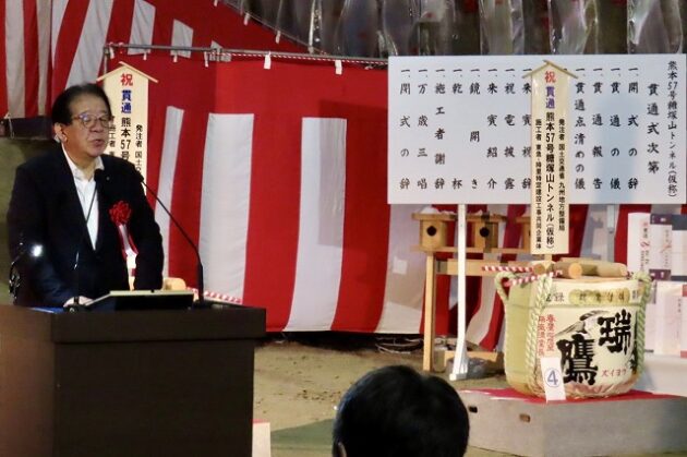 熊本天草幹線道路 熊本57号 宇土道路 糠塚山トンネル「 貫通式 」( 宇土市網津町地先・糠塚山トンネル坑内 )