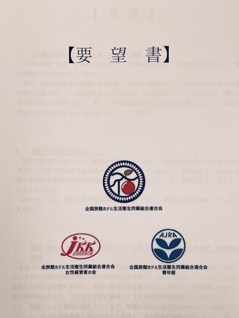 全国旅館ホテル生活衛生同業組合連合会 青年部・瀬戸口 熊本県部長、竹下・富田委員 要望来室