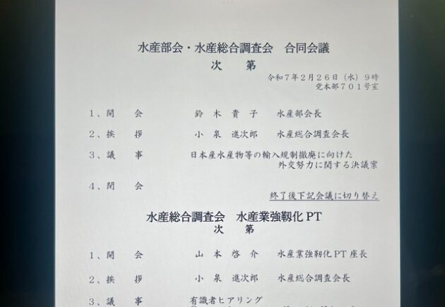 自民党 水産部会・水産総合調査会 合同会議、水産業強靭化PT