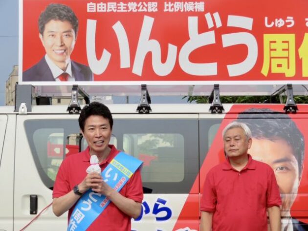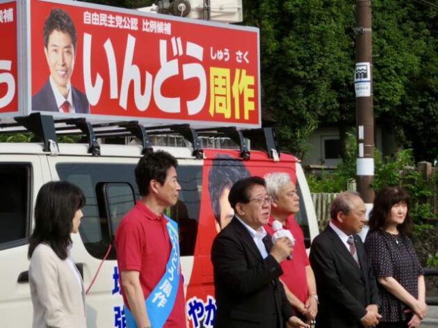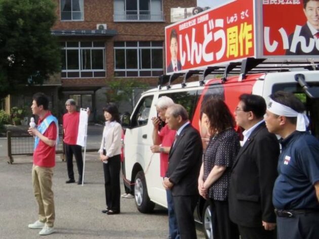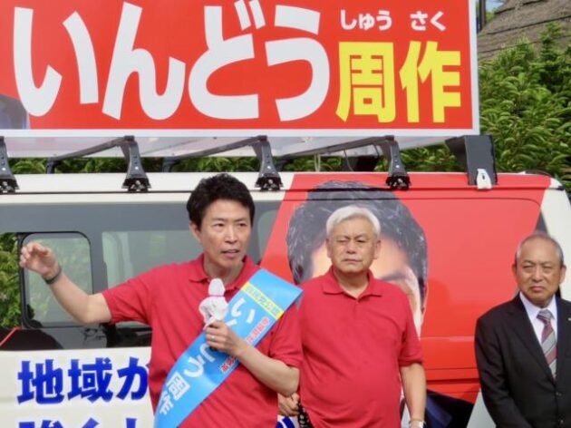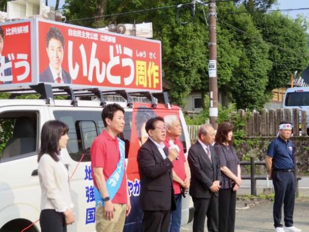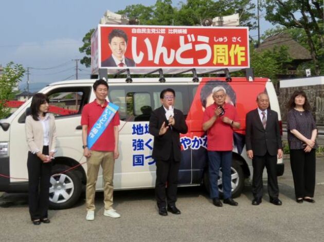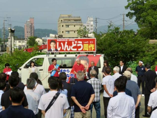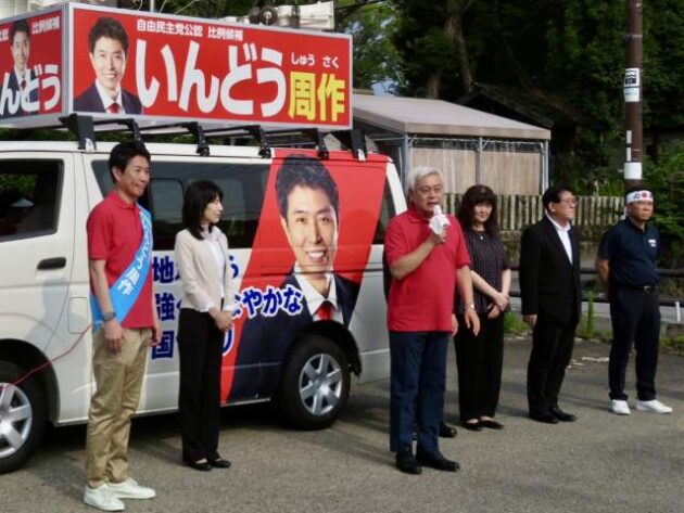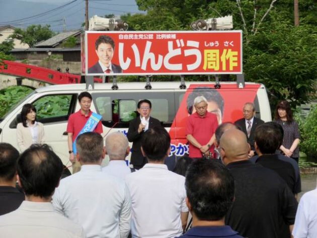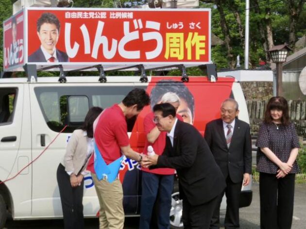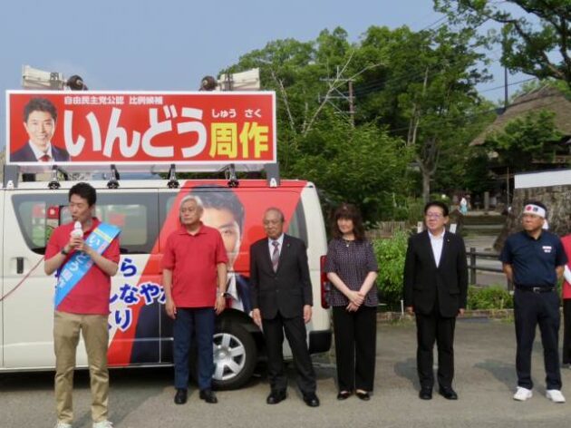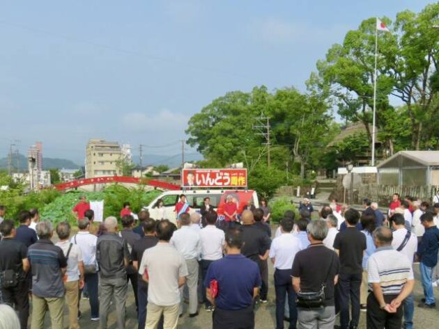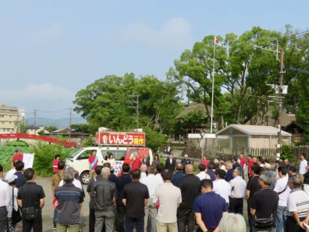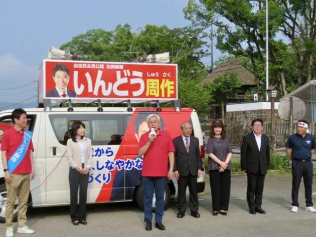 〔 参議院議員 選挙 〕いんどう周作 全国比例候補「 出陣式 」 ( 人吉市・国宝 青井阿蘇神社 駐車場 )