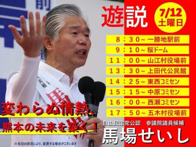 〔 参議院議員 選挙 10日目 〕馬場せいし候補「 球磨村→山江村→人吉市→( 相良村 通過 ) →五木村 遊説 」に熊本4区選挙長として同行