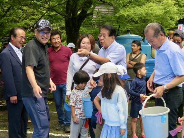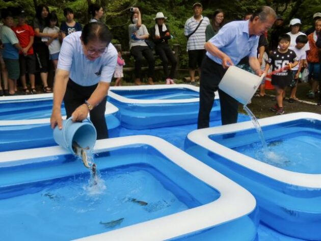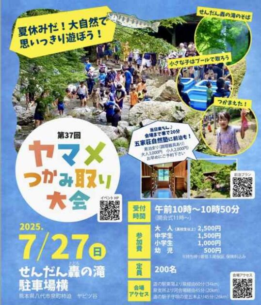 八代市 泉町観光協会「 ヤマメ つかみ取り大会 」 ( 八代市泉町柿迫・せんだん轟の滝 駐車場 横 )