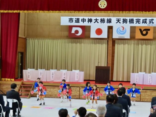 国土交通省 九州地方整備局 八代復興事務所・熊本県・人吉市「 市道 中神大柿線「 天狗橋 」完成式 」オープニングアトラクション( 人吉市・西瀬小学校 体育館 )