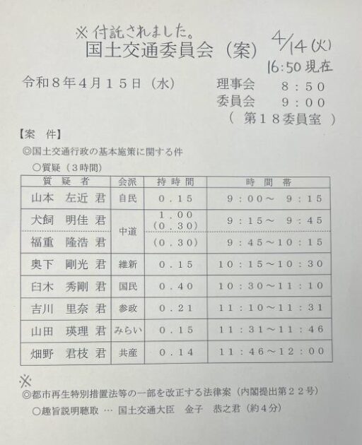衆議院国土交通委員会 対応など打ち合わせ( 国土交通大臣室 )