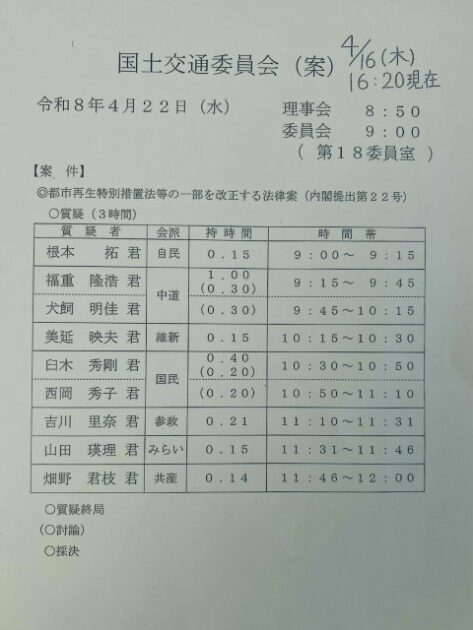 衆議院 国土交通委員会「 都市再生特別措置法等の一部を改正する法律案 に対する質疑3時間・採決 」( 衆議院・第18委員会室 )