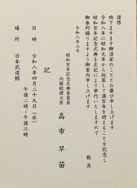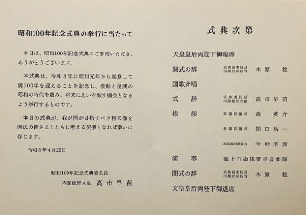 昭和100年記念式典( 日本武道館 )※天皇皇后両陛下 御臨席